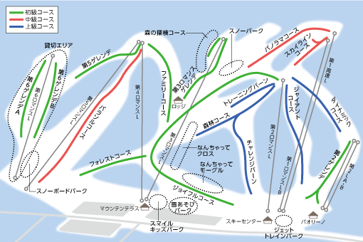 「ゲレンデマップ」と「通信エリアマップ」のボタンをタップしてください。画像が切り替わります。