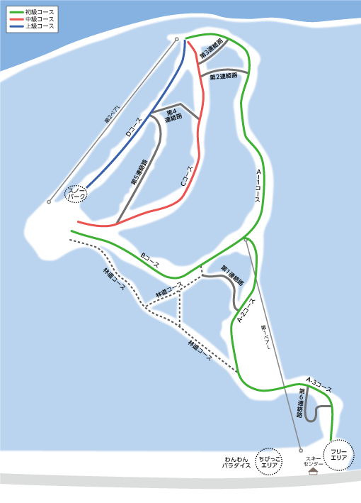 「ゲレンデマップ」と「通信エリアマップ」のボタンをタップしてください。画像が切り替わります。